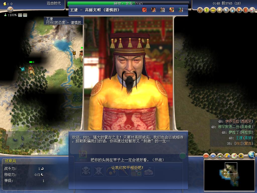 别失八里杀出兵营和一小弓,加上主城出的小弓和2棒棒杀向佛教圣城马德里,第一次蒙西战争拉开了序幕,又来了个小插曲。