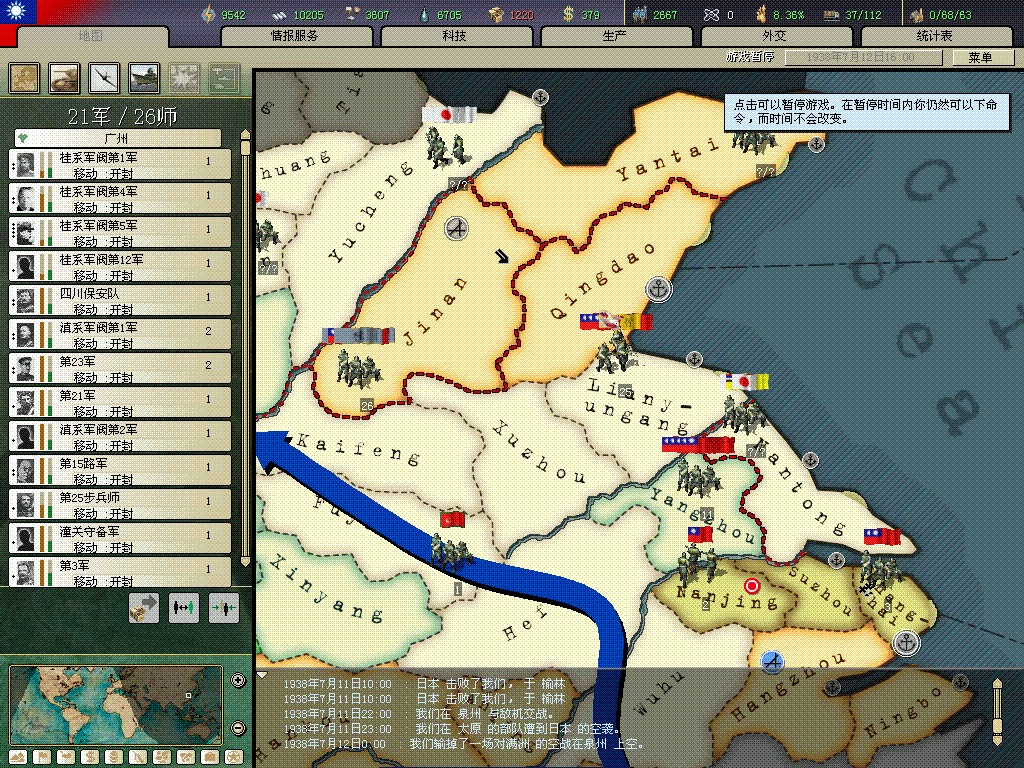 桂系第二个首都)后触发桂系求和事件。对桂系战争麻烦在于为了日后抗战,舍不得围歼桂系部队,如不能触发时间将很头痛。另外好象不能先宣桂系,不然他死活不降,日本和其他军阀很可能一起宣你,我就因为宣了桂系导致日本提早入侵,而且没统一战线。国土沦丧啊