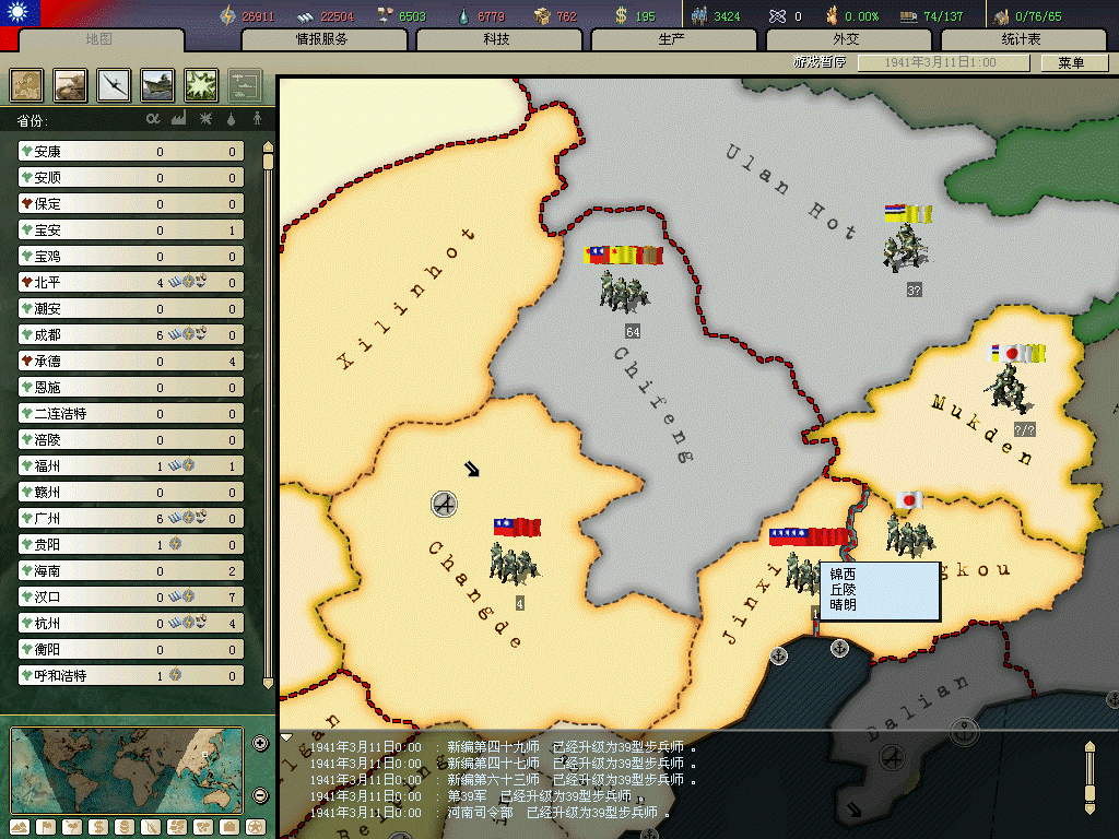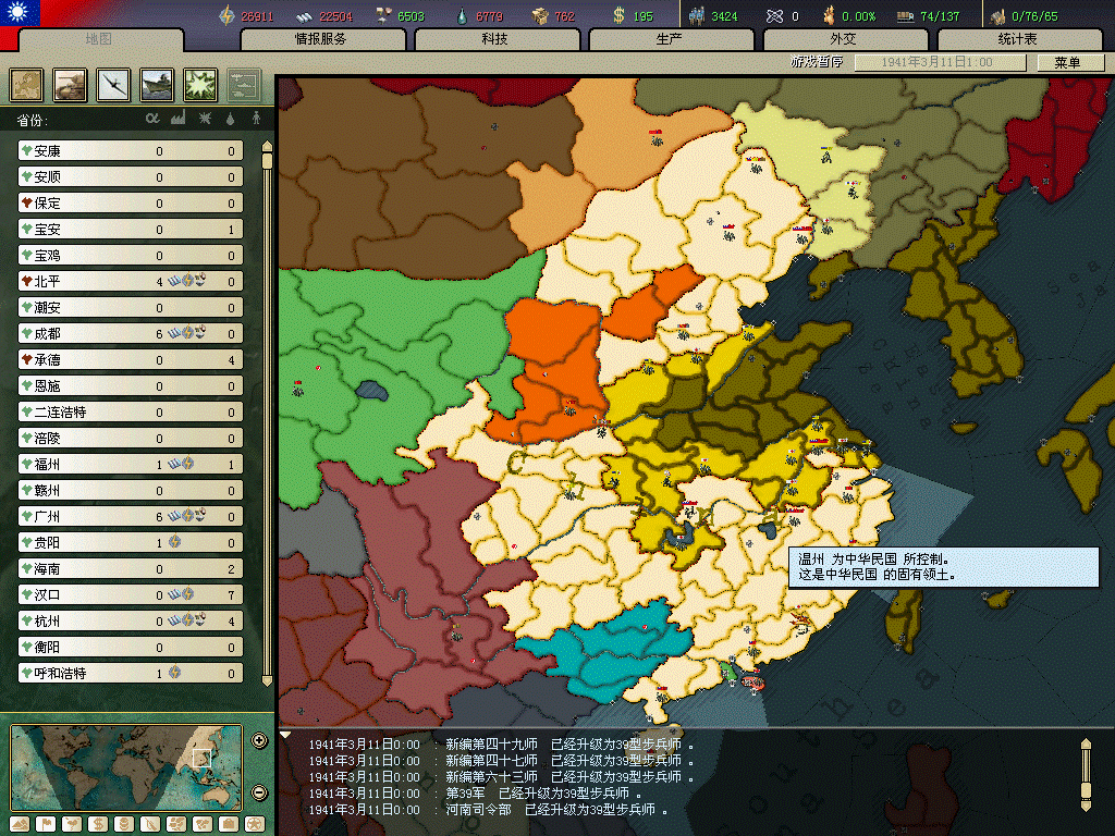 标题: 龙战于野, 《钢铁雄心II末日1.3版》新手民国36年NV级战报(已完成)