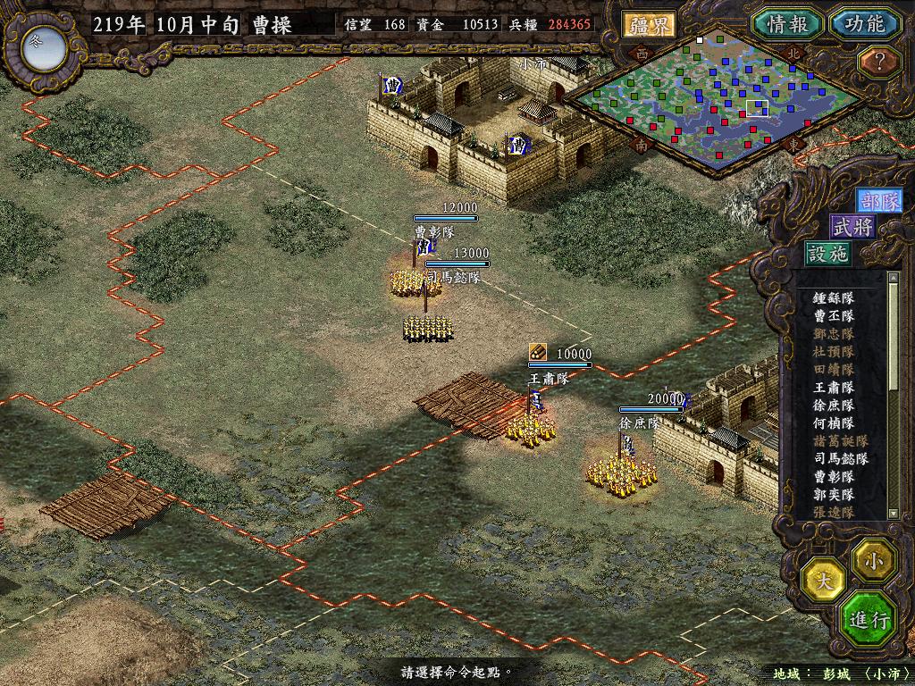 为了准备战役,隆中,新野兵力只有基本守备队,和威慑性的武将镇守,所有预备队都用完了.等待北方2W的丕儿赶到.