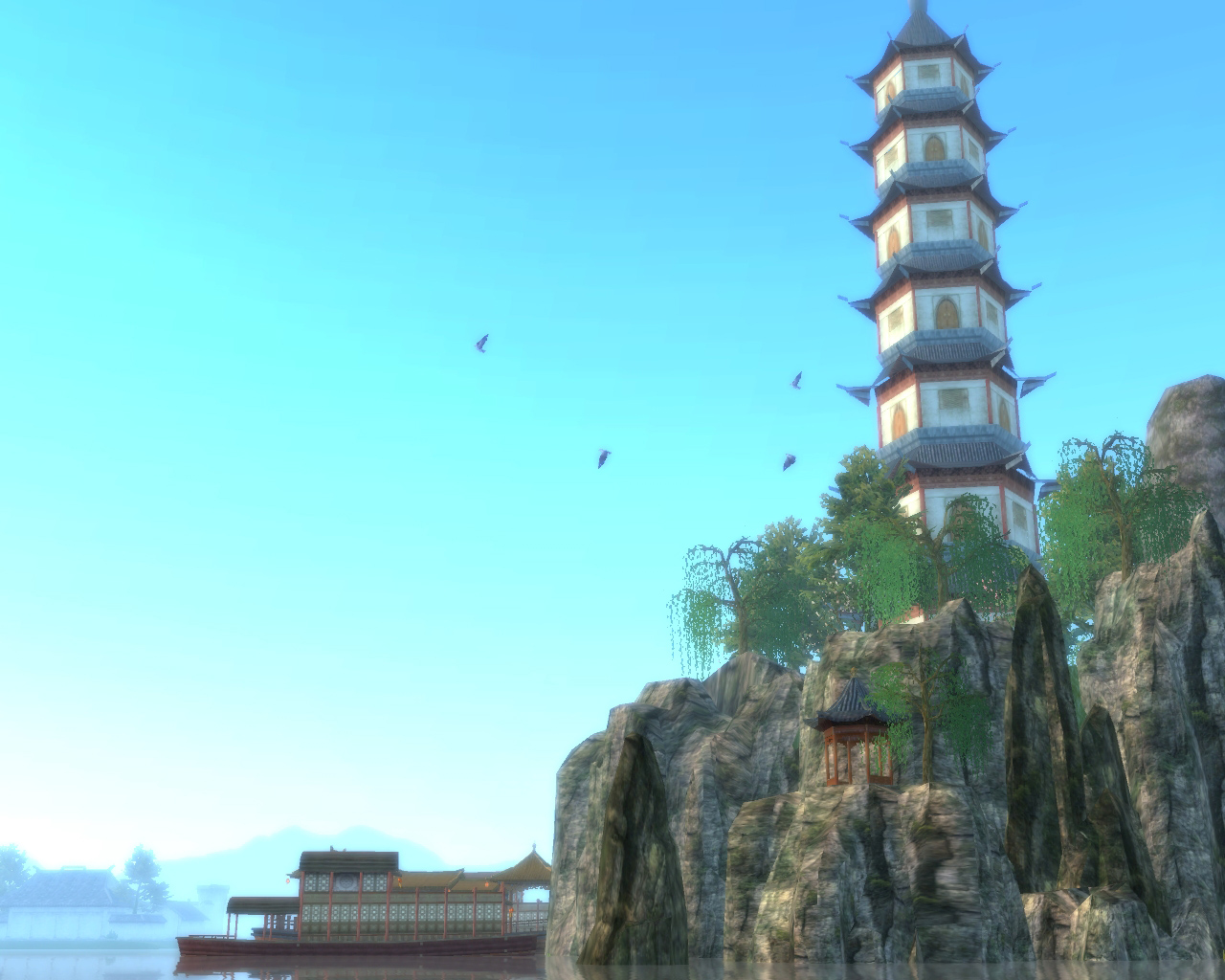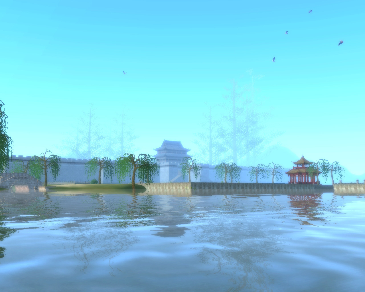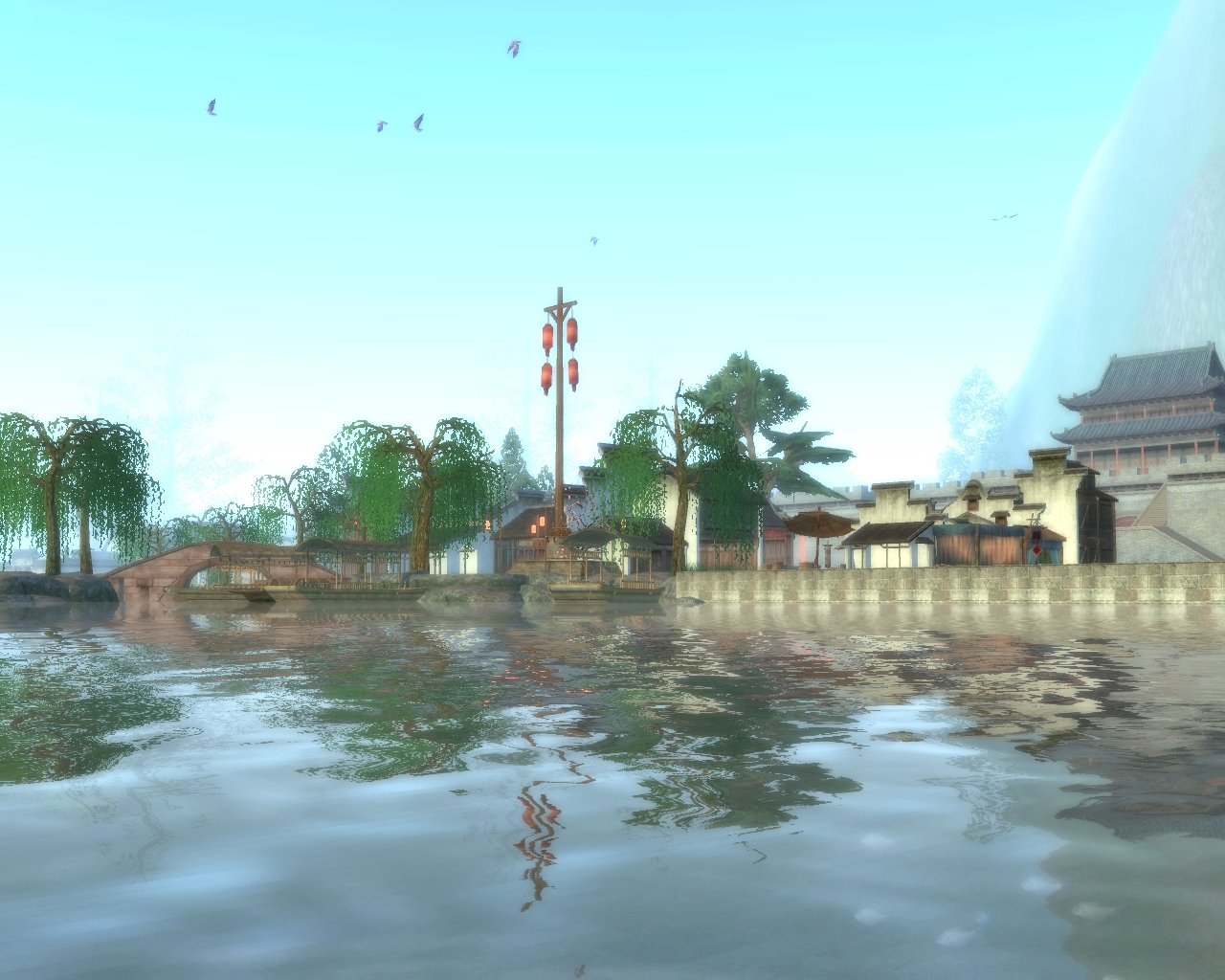 下面的图是在游戏中江南场景的云轩城截的图