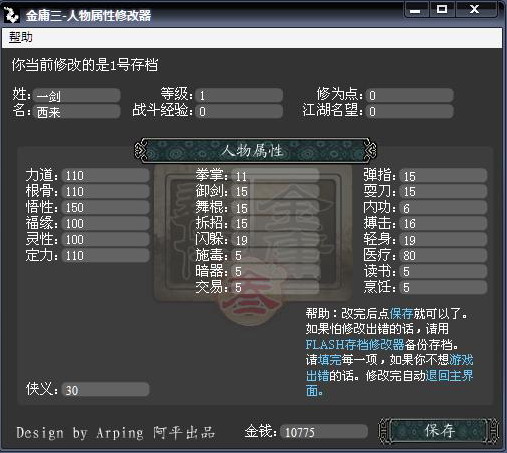 小提示:把游戏文件下载到本地,然后使用浏览器或KMplayer等打开“金庸群侠传3”就可以本地玩了。