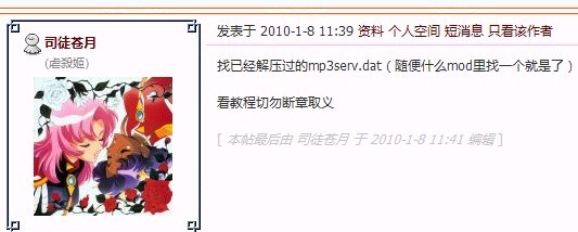 找已经解压过的mp3serv.dat(随便什么mod里找一个就是了)