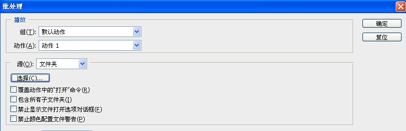8.最后选择文件-自动-批处理(不要开文档),然后选择你刚刚录制的脚本,选择图像所在的文档,点确定。