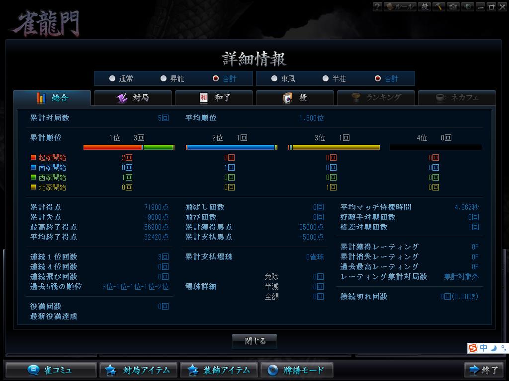 回到了学校(IP段属于联通),这回总算可以连了,成功登录,先练一把,主菜单最右边的按钮,点击,选择“CPU战”,进入人机对战。(不懂日麻规则的可以点击主菜单最右边按钮后选择第一个“麻雀讲座”)