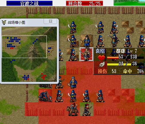 五、赤壁二:1个7级,4个5级,27个1级小兵。这关若直接杀诸葛亮,会得到128点经验必定导致升级,所以只能选择另外一个隐藏胜利条件,将敌军杀剩至8人。