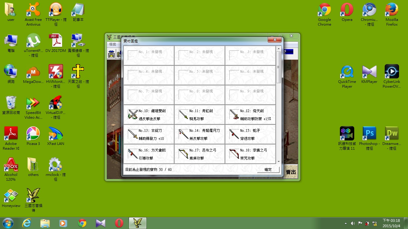最近在重新玩曹操傳繁體原版遊戲 並且嘗試修改一些東西 而目前在改一開始全寶物圖鑑擴展並新增寶物