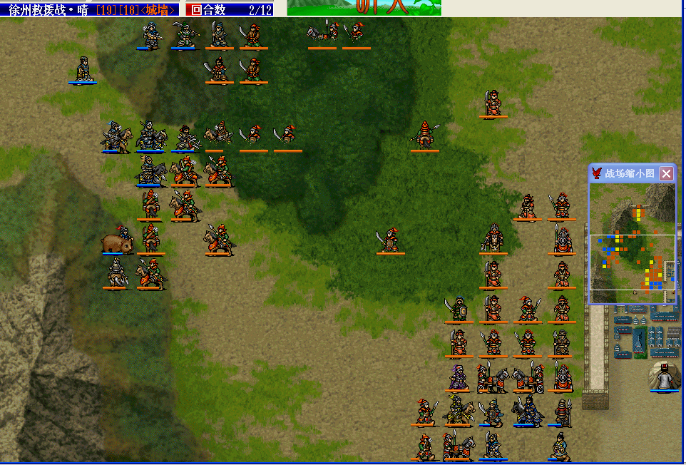 消灭之后用了两个小补给,然后曹操去诱敌,然后后退。这是第九回合,这里可能着急了,因为这次我发现很难坚持到11回合雨天,只好提前想办法勾引张宝了。