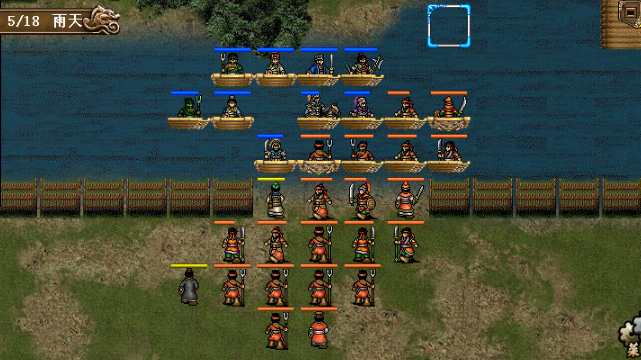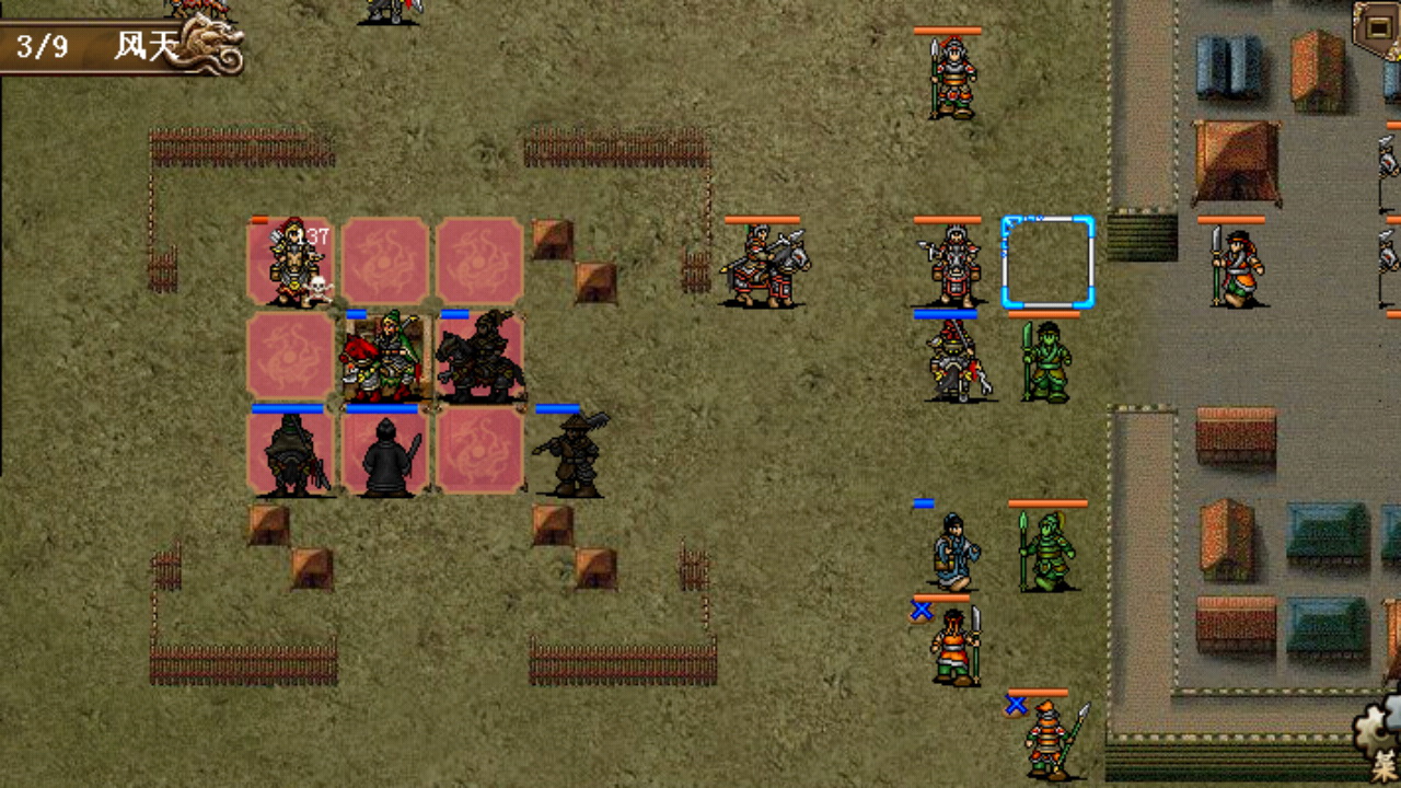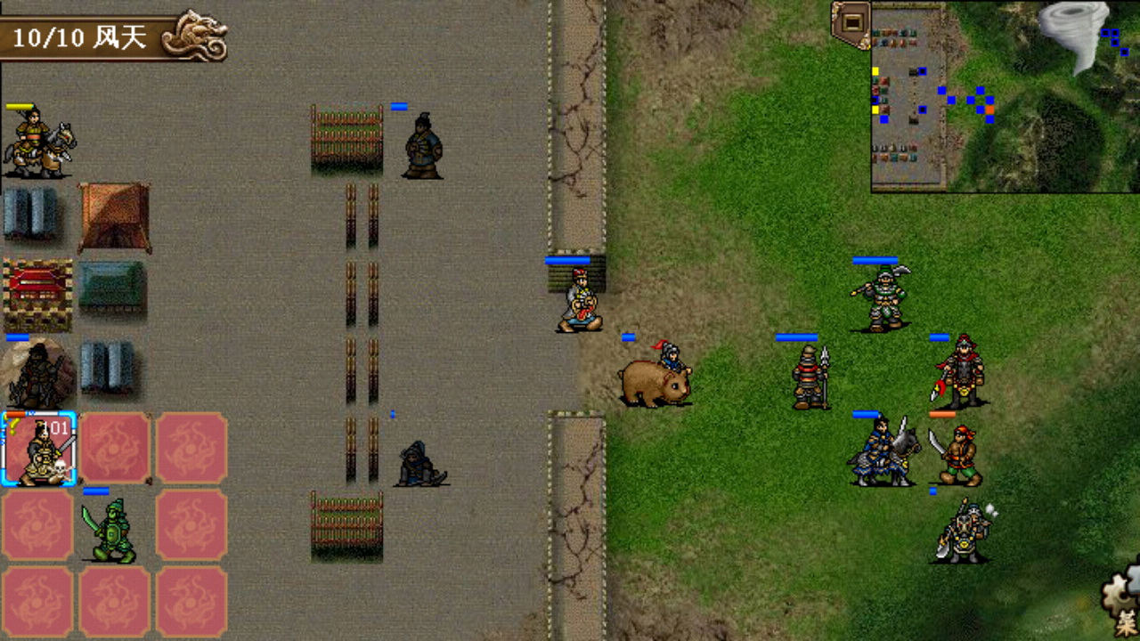 本关友军战斗力非常强,由我方控制的孙坚更是硬如狗,如果觉得开局的压力大可以考虑先保住程普和黄盖,想多刷经验的话也可不必触发关羽和华雄的单挑,很简单的一关,10回合全灭过关。