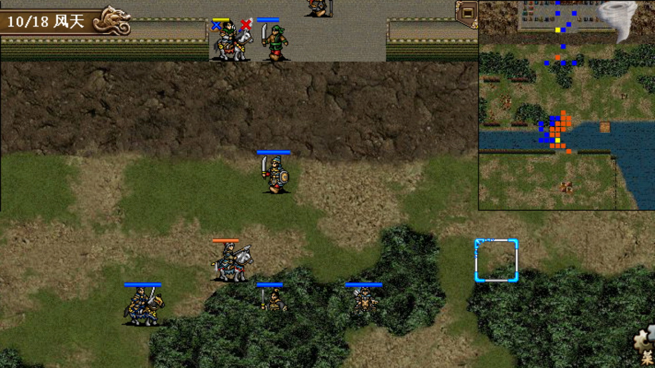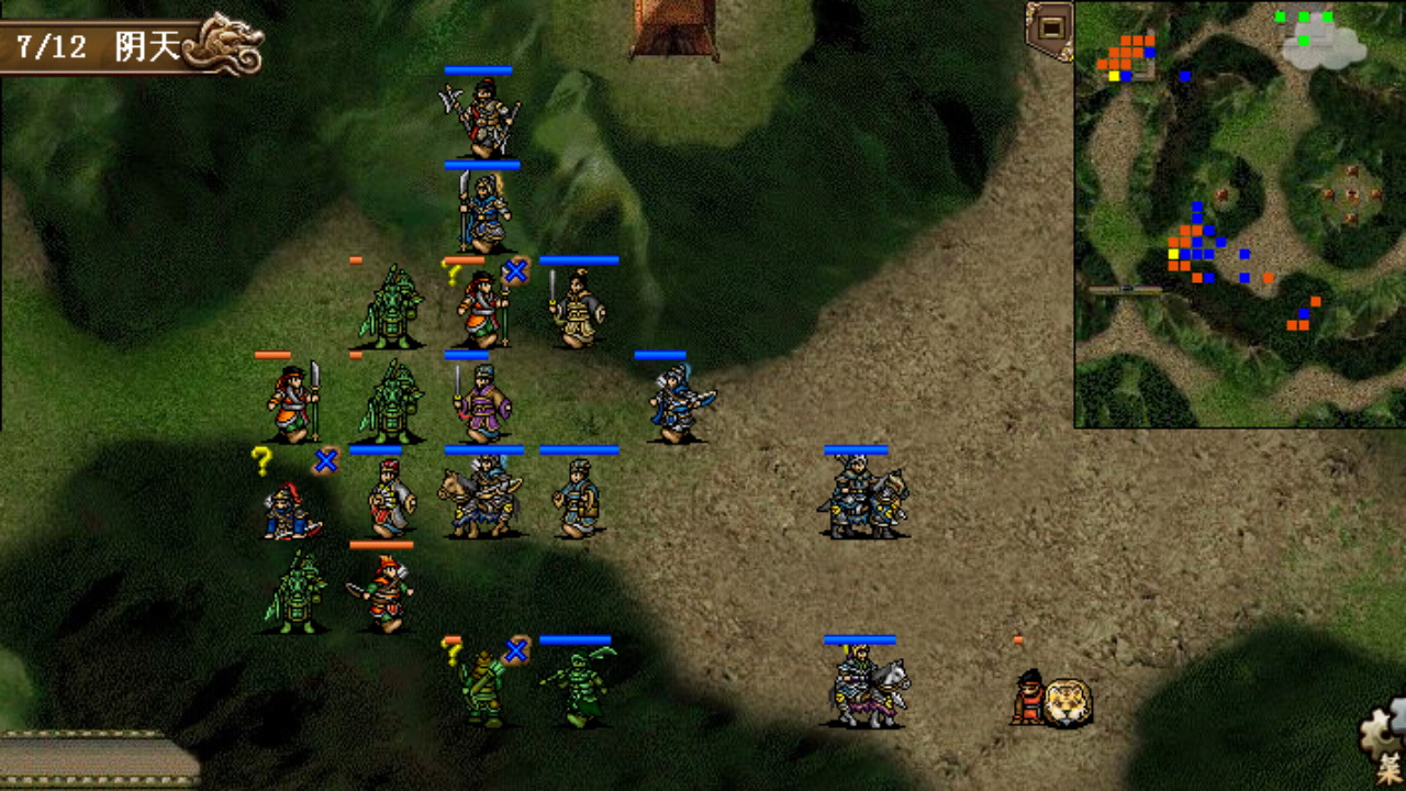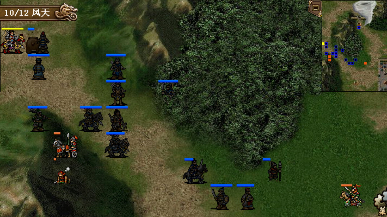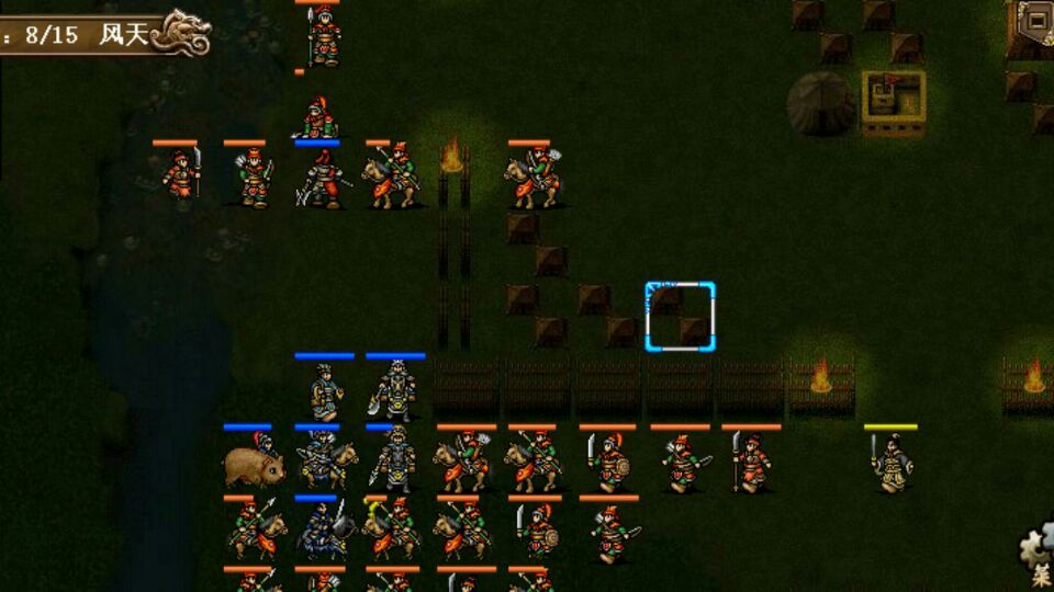 这一关挺麻烦的,手机版敌军的伏兵第3回合就出来了,开局无法再到达河边布阵了,只能围着村庄来打,曹操、大小夏侯在外面,其余的武将往右上山或入树林,利用好优势地形。李典深入树林算好位置第一时间触发和李傕的单挑破其防御,敌军左右两侧都有弓兵,十分恶心,应该找机会优先干掉,对付高防的西凉骑徐荣没有太多的好办法,只能让曹操大小夏侯在和他刚正面,慢慢消耗。如果前期能合理布阵提高杀敌效率,熬到吕布出击反倒没有什么压力了,吕布的ai攻击锁定曹操,曹操站在村庄让他打,利用旋风和远距围攻,绝影夏侯渊过河拿物品,17回合全灭过关。