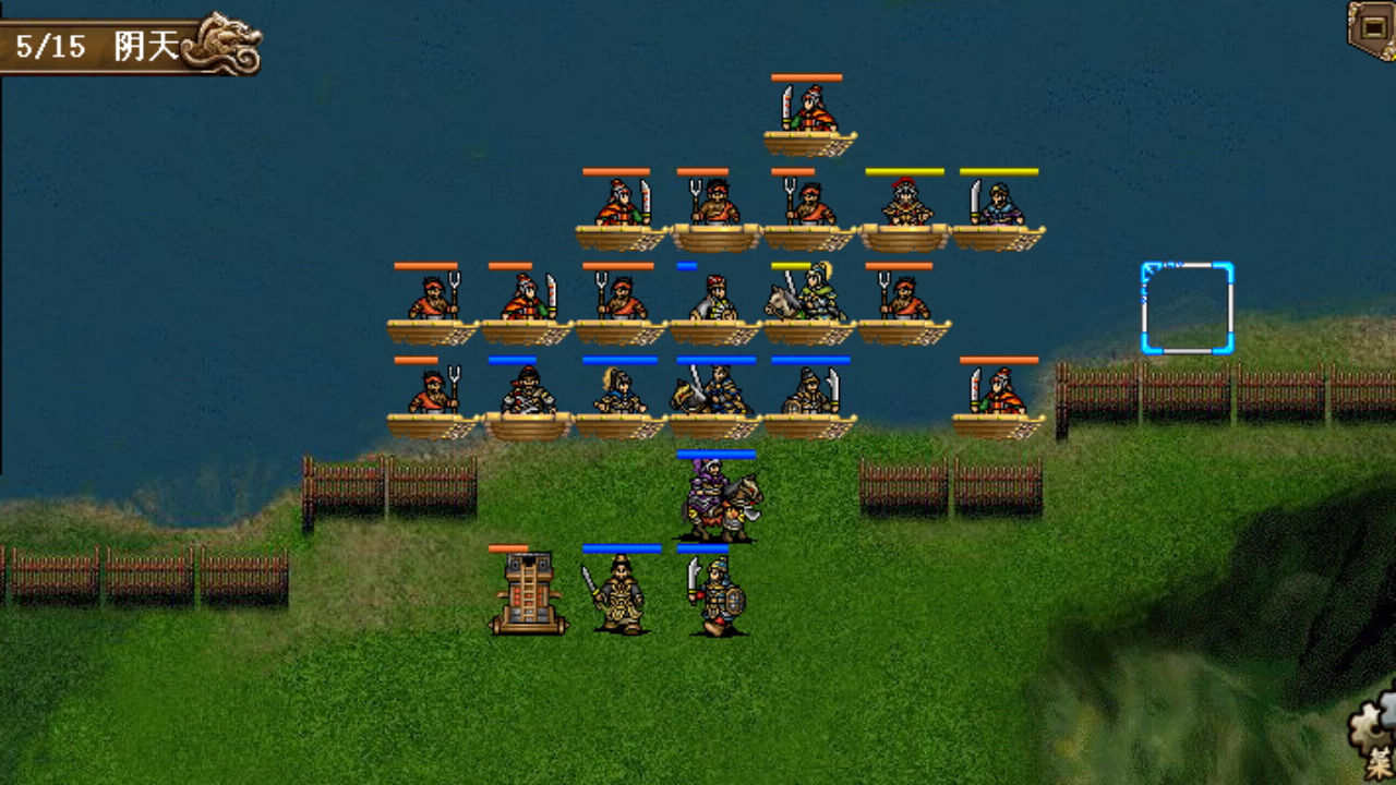 这一关对我来说实在是没有多少存在感,也是比较简单的一关。主要就是力争在刘备援军到来之前攻进城,避免被两面夹击,消灭城中敌军后,再往外推进,只要先灭掉张飞,其他都是小菜,可以尽情收割,最后15回合全灭过关。这一关是敌军第一次有医生出场,但是手机版敌军的医生特别好控制,AI会优先使用觉醒策略解除陷入异常状态的敌军(麻痹、混乱、中毒),用于禁的养由基弓或者贾诩的毒系和麻痹策略都可以使敌军的医生/诸葛亮深陷觉(S)醒(B)之中无暇补给。