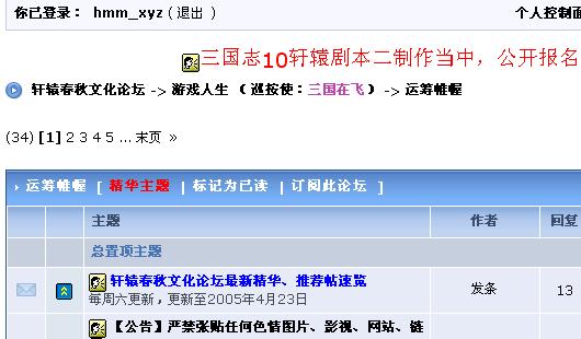 鼠标移动到论坛主页“轩辕春秋文化论坛”就自动弹出下面的子目录