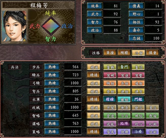 智力和政治的资质是卓著,统帅和武力资质只是普通