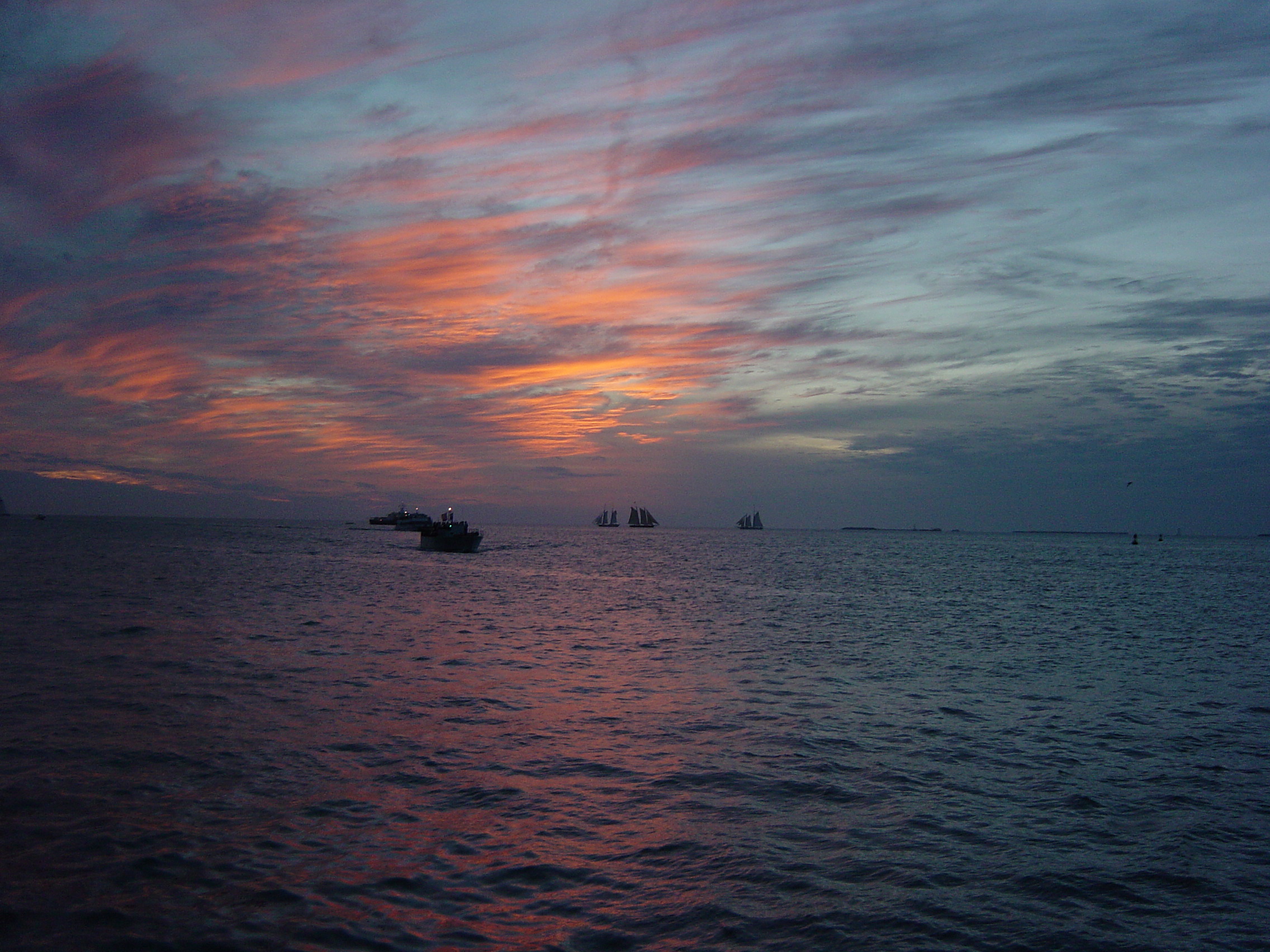 落日之晖。摄于著名景点Key west.(落霞与孤鹜齐飞,秋水共长天一色。[不过好像多了几艘船])