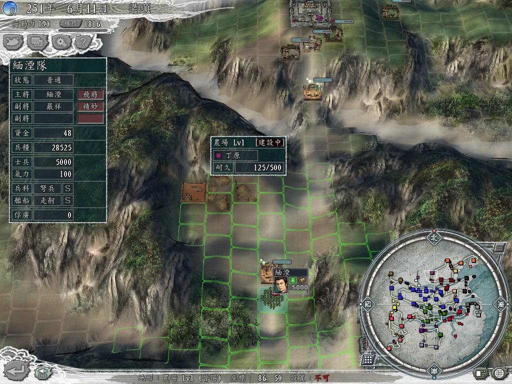N旬前,俺和丁原在壶关附近打了场野战,打垮了丁原的部队,顺便把他的设施也给打下来了,于是留了一队人马骚扰丁原的经济,丁原造一个设施俺就打一个,丁原竟然不理俺,呵呵,之前留的是张合,打了几十旬,武力都升了1点,愣是把张合携带的兵粮打成了50000,换这人再来打,还是不理俺,放心大胆的在旁边造个军乐台慢慢打,丁原没有农场,兵粮也从几十W减到了几W,嘿嘿,俺接着打,打到他弹尽粮绝,自动垮台!