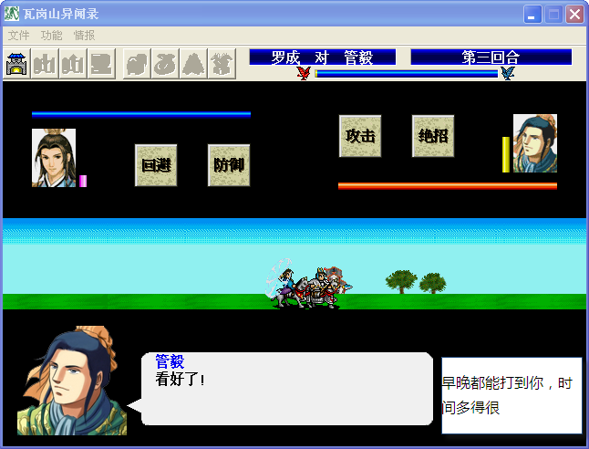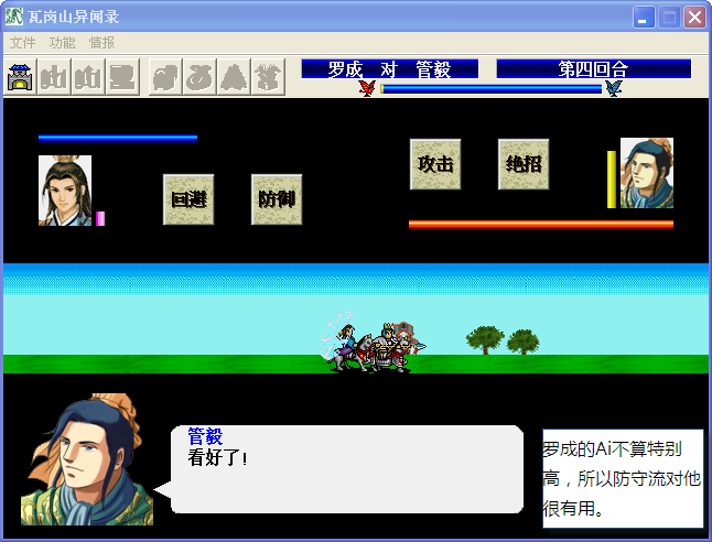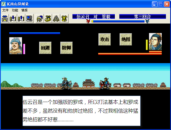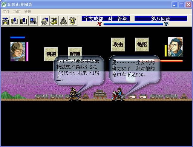 不过,天无绝人之路,瓦岗山异闻录的R单挑,虽然大有“把成都杨素挑着玩儿”的超级无敌绝顶高手;“把成都杨素挑残”的超级无敌高手;“和成都杨素打平”的超级绝顶高手;“除了成都杨素全部干掉的”绝顶高手。(不过不可能有:不损血干掉成都杨素才是“超级无敌天下第一绝对不会有第二个的绝顶高手”吧)但是还有些人抱怨R单挑难,这也算一个骗TB啊,增加发贴数的好机会。所以我来这里发图文教学。