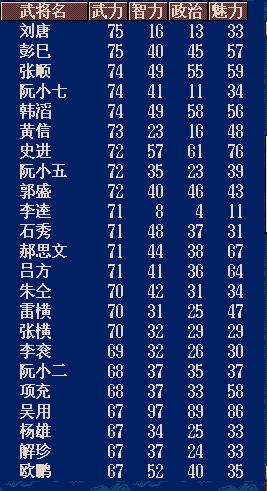 秦明勇猛6(有过怯战-1,不然为7),冷静为0(霹雳火嘛)
