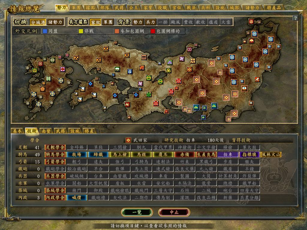 武田的骑兵太厉害了,我选信长,只有守的份,根本攻不过去,和军神同盟的,但是学不到好的技术.德川给他灭了,现在就在我城市旁边