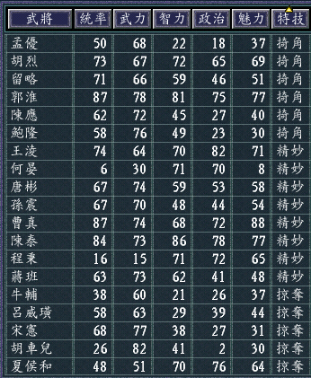 请问您有没有实际使用过这个设置?看一眼就可以判断是否平衡?我觉得,您不妨放到251剧本里,让电脑自动运行一下,看看结果是否和koei原武将设置的运行结果类似。