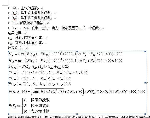 Ha函数要考虑对方的防御力。对方的防御阵型系数要比攻击阵型系数大。进攻阵型系数是双倍阵型数值/25,而防御阵型系数只除以15.如果是攻城还要考虑城壁的附加影响(0.4)。普攻的劣势就是体现在这里。