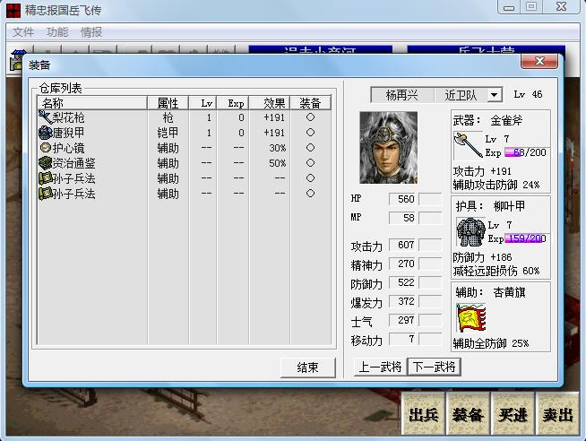 只有当对杨再兴一击伤害占其总HP10%以内,且对岳云一击伤害占其总HP10%以上,围住杨再兴的弓兵才会打岳云。所以杨再兴必定穿柳叶甲,如果柳叶甲没有升上7级,杨再兴还需要赤兔马辅助。玉砌连环铠等级够高肯定给岳云穿。