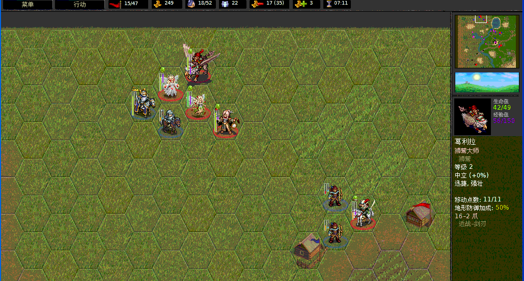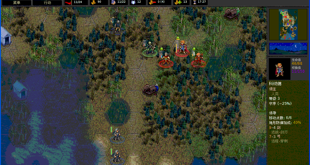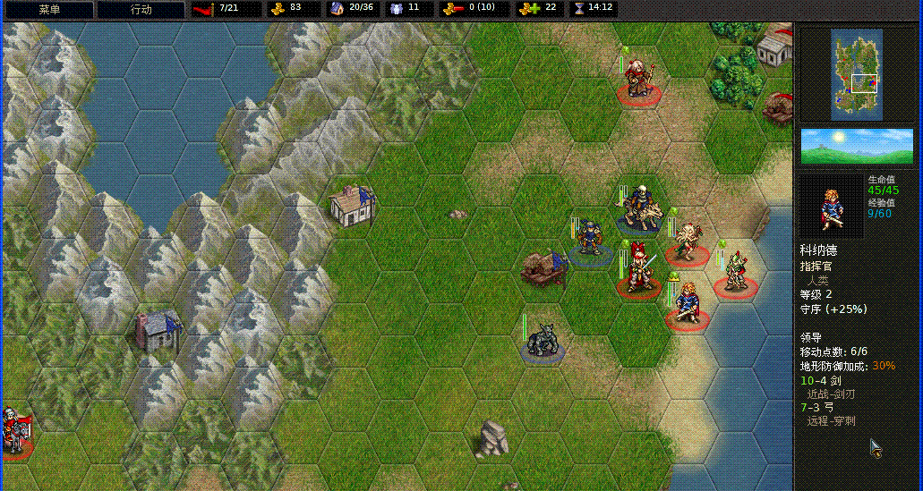 高阶骑士是HP最高、单次攻击杀伤力最大的兵种,两种攻击分别是:12×4的剑刃和17×2的穿刺(带冲锋特性)。看看这个数据就知道高阶骑士是多么的强悍。移动力7。