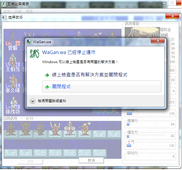 小弟在打到长蛇阵之战之后系统就经常会发生错误,错误大部分是发生在选择出战角色的时候.