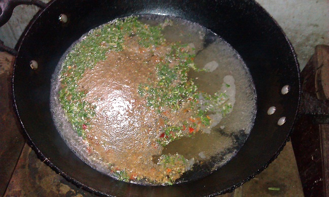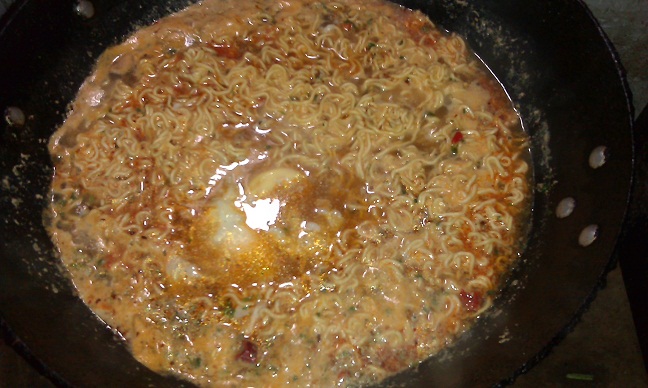4、方便面下锅,顺便把酱包加进去