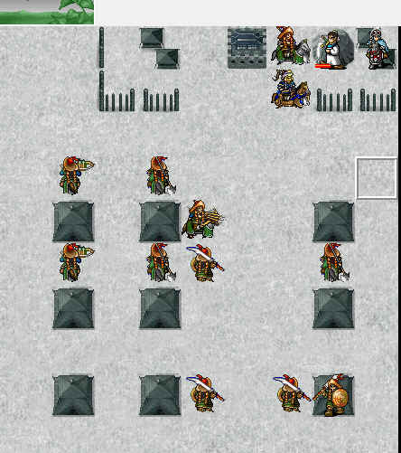 第一回合,先给汤怀分配好功勋,然后汤怀右上走攻击金兀术右边的弩兵。这里要SL下,必须保证弩兵的反击汤怀被格挡,再次行动后走到右上角落,灭掉那个弩兵,顺便升到69级。九成走到汤怀前面用强阵。这时汤怀身上防精运3个BUFF。敌方回合,2个人混乱,AI是外面的小兵先动,下面2个骑兵会上来攻击汤怀,把汤怀围住,这样金兀术就接触不到汤怀,他会进右上那个兵营对汤怀用狂风。这样汤怀只承受4次攻击,2个骑兵,金兀术的狂风,金兀术营里的一个弩兵。弩兵攻击50+,金兀术吹风100上下,2个骑兵,2个骑兵因为是背后攻击每个伤害有160上下,总伤害大概470左右,汤怀有490血,一轮下来大概还有20左右的血皮。这里不得不说天气,一开始我也没注意,后面有几个回合金兀术的狂风伤害一下子飙升到130+,汤怀直接躺了,试了几次才发现是天气因素,雨天对吹风有加成,而晴天伤害最小,69级金兀术99点MP,狂风要20点MP,所以最好保证前5回合都是晴天,否则汤怀顶不住,或者SL每次伤害都浮动到最小,可能还能剩下个位数的血皮,不过这个SL量太大,还不如SL天气比较好。