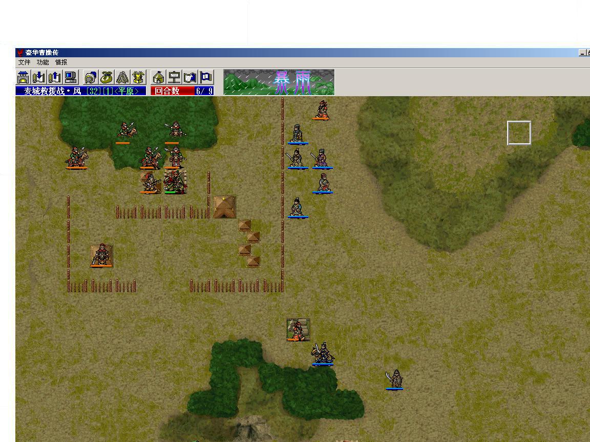 留关索守城池。其它刘军全部从西门出去,杀西面和南面大将和拿物品。我方出5个法师加庞德和夏候渊,与关羽一道杀北面和东面的敌将。