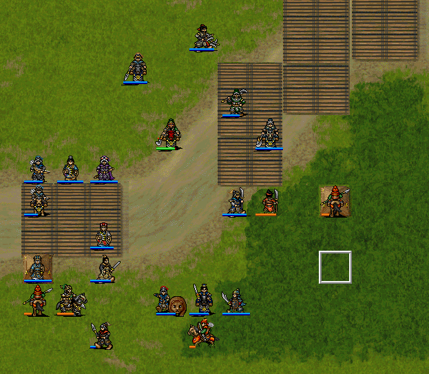 主要思路:曹仁占据右边兵营(需要加个防),装备钴锭剑,黄金铠。曹操和李典中路延缓大批敌人随文丑下来后防止西进,主力部队集中歼灭西边的敌人,全灭西侧后杀袁绍再接应曹操三人组,实现全灭。主力装备:夏侯渊虎筋+炎狐,夏侯惇狼牙+亮银,典韦双戟+血葫芦,贾诩装奇门遁甲。夏侯、典韦、许诸、徐晃四人丁字站前,贾诩、荀彧双风阵加郭嘉火阵主要输出,荀攸专职奶。最后一个敌人文丑让关羽完成最后一击随即触发单挑,很爽的完成了全灭。