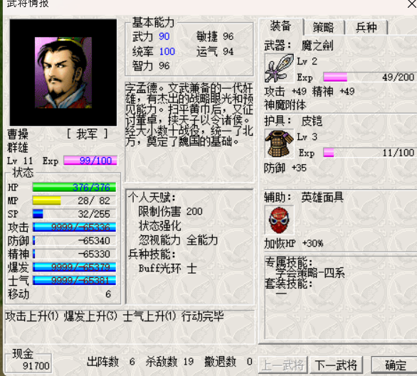 修正了策略先手,策略追击,策略反击不能使用0号策略,输入的特效值为策略号+1,如灼热应该填1,依次类推