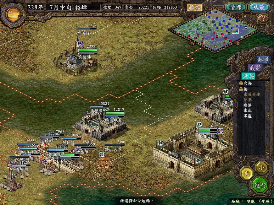 还有要提醒大家,三王是同时对你的两个城池发起进攻的,最好把武将安排好,善于陆战的放在东武,善于水战的放在末卢。