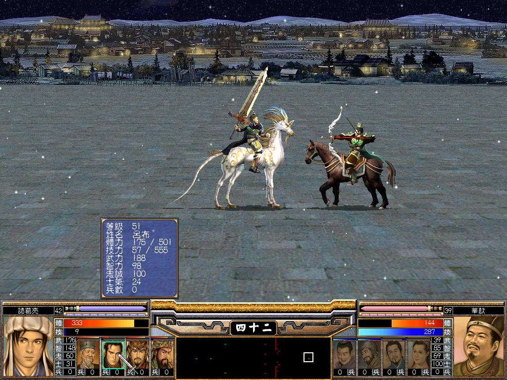 主力队伍没有带兵,旁边有队满兵的押阵,但没有出手。打完之后单尽粮绝,危险到了极点~~~!!