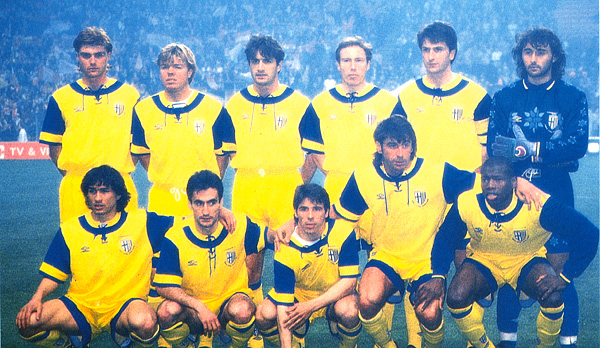 意大利作曲家维迪出生于帕尔马城,其实这样的小城在中国这样多人口的城市也就算小镇而已,为了提高帕尔玛的名声,俱乐部成立之初就叫做“维迪足球俱乐部”。 帕尔马俱乐部的崛起史于90年代初期,在这支意甲新贵之中,最关键的两位球员就是土生土长的梅利和瑞典球星布洛林。在培养出天才门将布丰之前,帕尔马自己培养的球星最具影响力的就是梅利,对帕尔玛声如甲级联赛可谓功不可没,甚至还曾一度加入过意大利国家队;而布洛林呢在94世界杯上火的可不得了,记得94年美国世界杯,布洛林凭借着精准的中场调度,让瑞典成为进球最多的球队,布洛林自己攻进3球,并助攻3球,安得森进5球(大概银靴),达赫林进4球,而还是替补身份的拉尔森竟然也攻进2球,最后瑞典获得世界杯第3名,锋线攻击群无与伦比。帕尔玛队在93欧洲联盟杯,94优胜者杯上精彩发挥,其领军人物正是大名鼎鼎的布洛林。