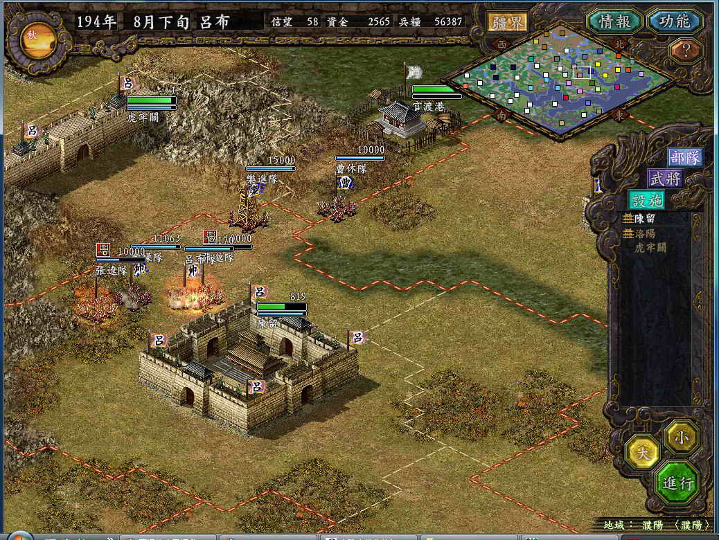 ----------------开始新游戏,官方史实剧本194 吕温候豪取兖州,势力吕布,开优化补丁,+50%强度,不S/L-------------------