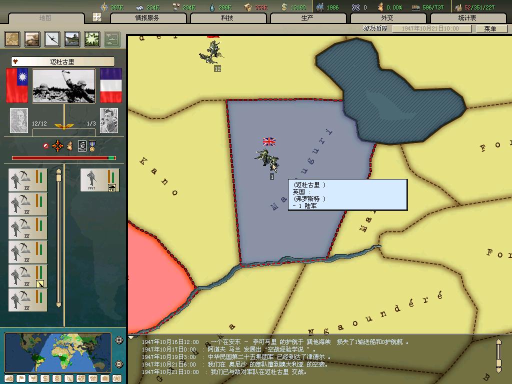 炮兵生产完成,欧洲主战场马上又能获得一批增援。尼斯的海军基地也造好了,不过我们现在不需要了。。。。