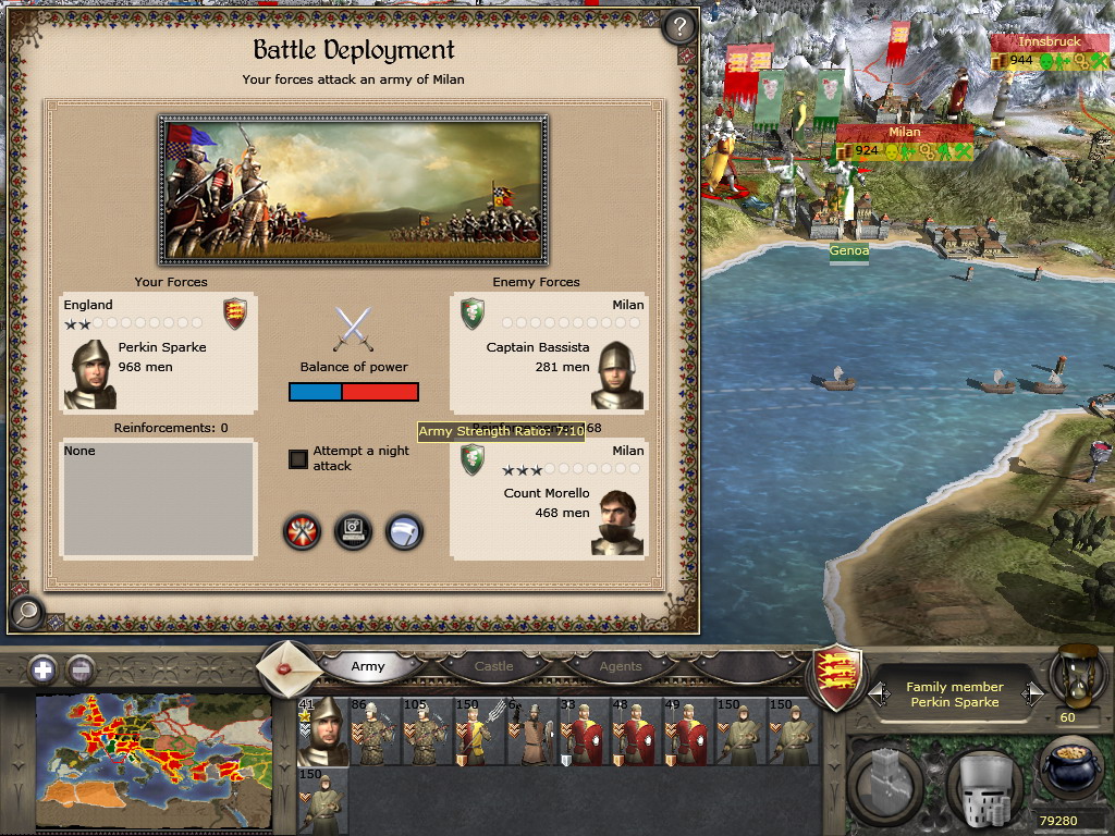 将米兰主力击溃以后,顺势背转身向Genoa进兵,一路进一路打。接近城池的时候,城里的守军出来与外面的部队合力,企图侥幸。