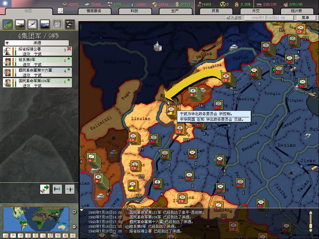 记得玩DA版轩辕MOD的时候,民国靠自己的石油支持不了机动部队~~~