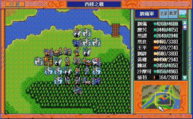 第24回合后:孙桓援助的差不多了刘备把骑兵混乱,放孙桓下来攻击马良,刘备绕过去准备卡位,沙摩柯在合适的时候灭掉上方步兵,让孙桓到这个位置,这样才能大策略吃主将。运输队醒来后大救济,然后到村庄左侧补给骑兵,糜芳混乱之,不能让他进村,否则后面没法利用村庄给骑兵补血了。魏延左侧骑兵血量不足时进村挑拨糜芳,左下骑兵醒来上移攻击魏延,运输队左下攻击魏延重新成阵,然后糜芳混乱村中骑兵,刘备攻击严畯并卡位,严畯醒来开始援助魏延下方骑兵。后面主要就是sl敌军的援助对象,敌军两个贼兵的策略真讨厌,中间用过若干次策略,否则还能多反击几下,体力是足够的,最后只能反击死猛兽和武术家,两个贼兵体力基本满的。