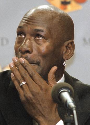 1999年1月13日,乔丹召开新闻发布会,第二次宣布退役,并表示“99.9%”不会再复出。图为乔丹在发布会上难以控制自己的感情留下英雄泪----因为他一直都深爱着篮球!