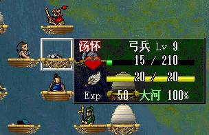下回合:如果RP好的话,梁红玉物理全档,王横中毒扣血,物理全档,吉汤前进后,诸葛牛鼻子给三人褔星,牛走到桥头,王佐降折彦质上面骑兵的防,由折暴击击退.岳飞给折部褔星,施全给我军四人褔星.友军回合王横双击骑兵,会由侍女击退,由于王横会走出道士放毒范围,侍女顶上,所以道士会向侍女万蛊缠身,而造成侍女的低血.注意不要拿药,要让低血岳帅去吸引敌人(不用管YYP的打法真爽!). (7)