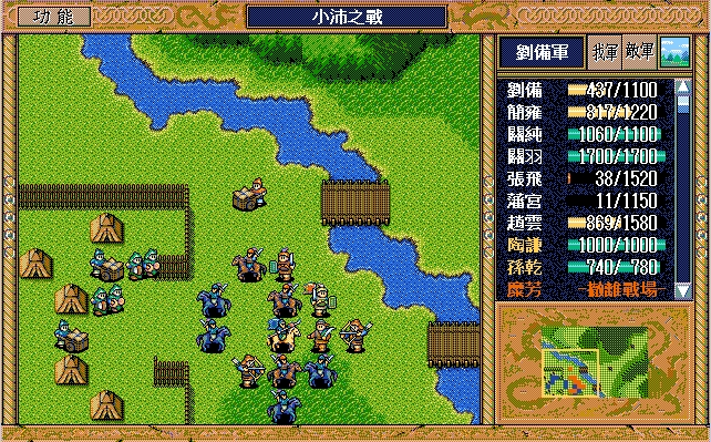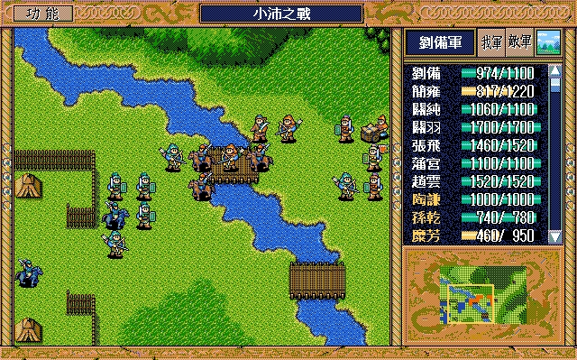 我 关羽右下、张飞右上牵制(都失败)、关纯右漩涡、赵云上、简雍右方两格攻击消灭乐进,刘备左四,藩宫左四下一;