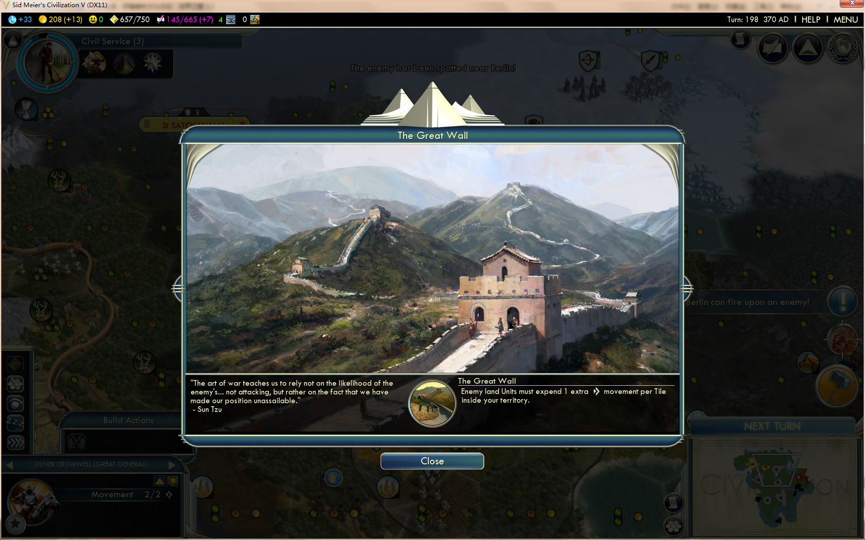 同时,汉堡报告,长城已经修好了!现在敌人在我国境内移动,要多消耗一点移动力。孙子云:拖死你妹。