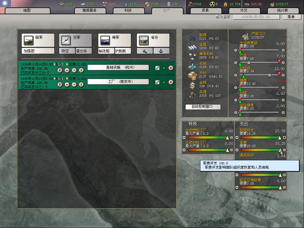 在南京加开一个工厂,这样37年的中德合作事件后ic刚好到40,科技可以开3洞,利于尽早完成36步兵。
