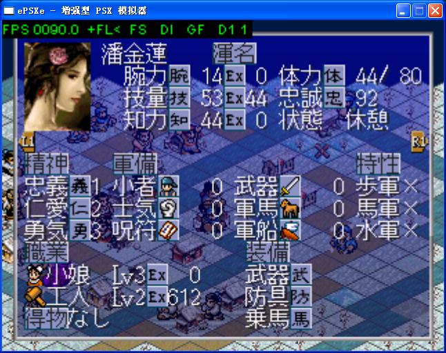 杨志出场,力:88,技:76,智:79(因为智力不好练,而他的最高,所以每次都选杨志),三级刁民。