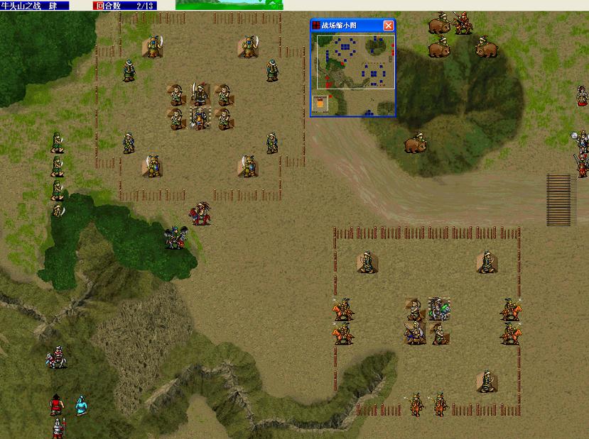 第一回合右上方故意触发四个熊伏兵,把韩彦直引过去。否则,韩彦直会过桥引过来银弹子率领的敌军,对右上的防守不利。
