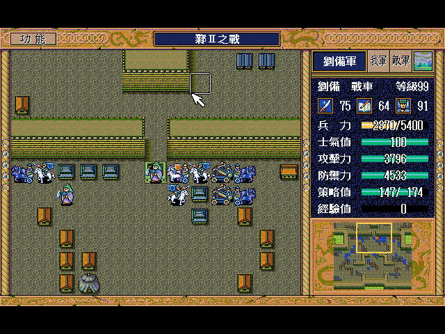 无名骑兵(上2)和周泰(左上)挑拨刘备用光策略后原地休息占两个位,剩下一个位(右上)灭人