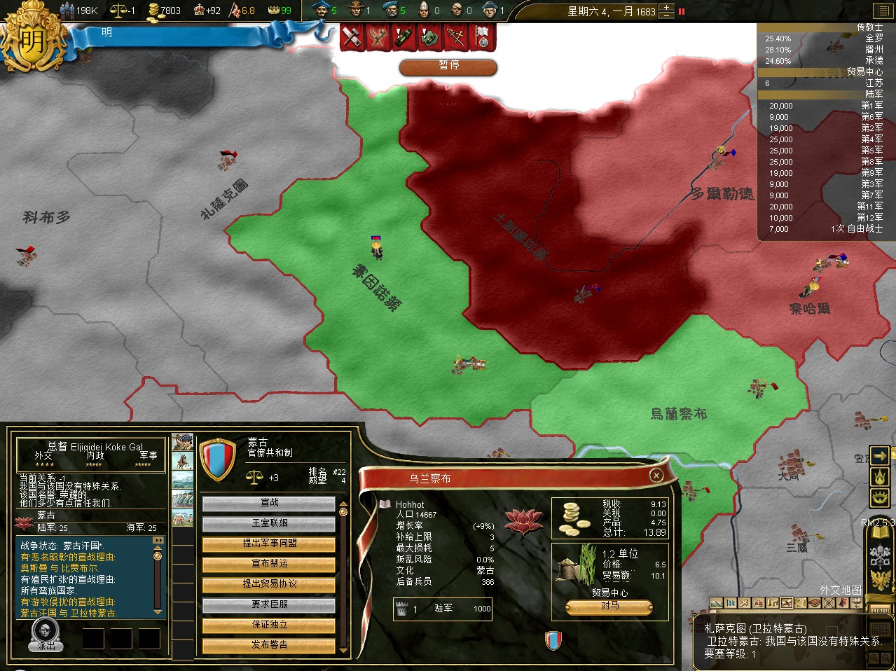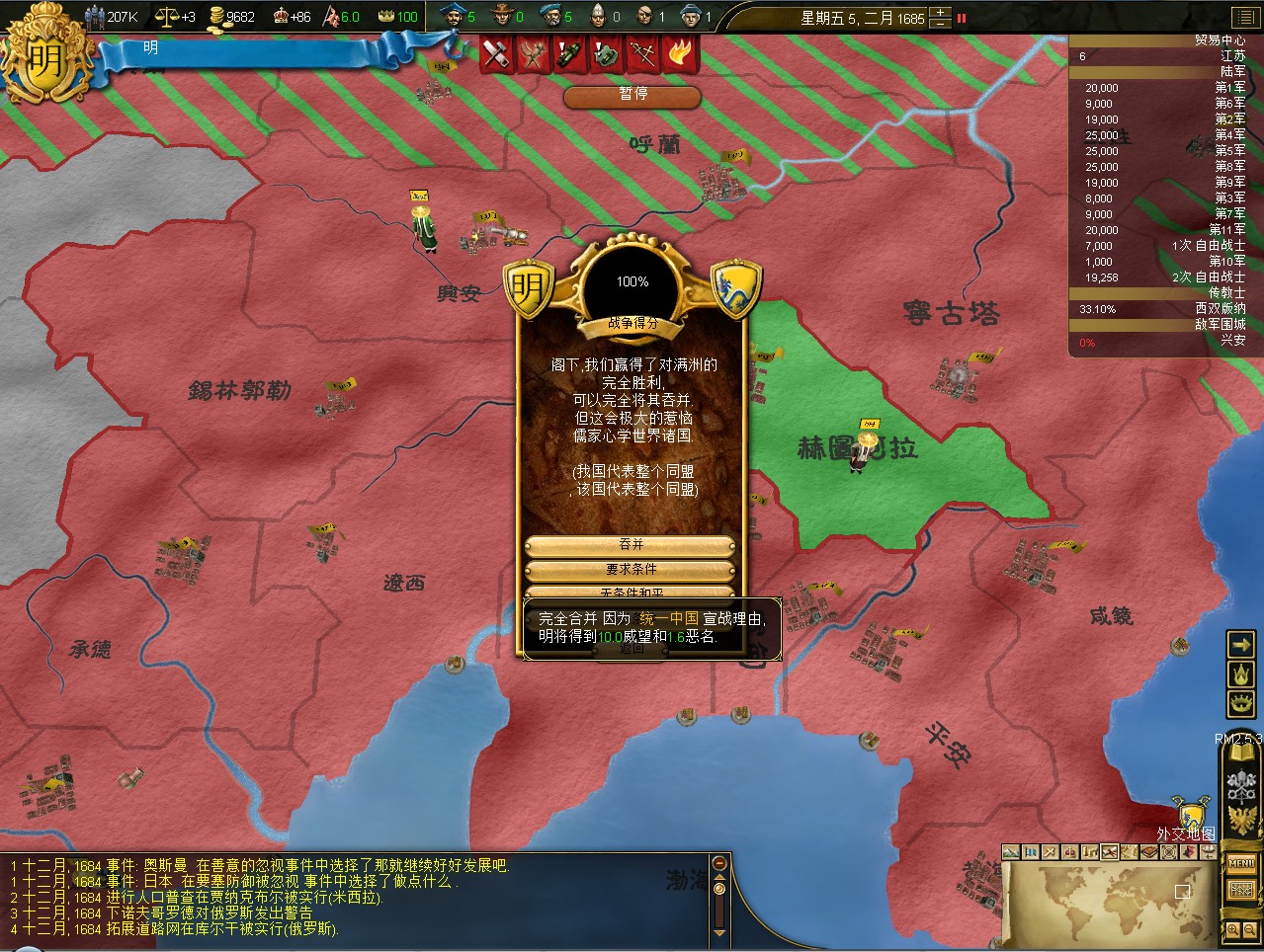 虽然建奴主动割地请降,但是这样BB太多,还是放了爱国者之后,搜刮威望吧。强迫建奴改变信仰,运气好的话,他能帮我传几块地的教。