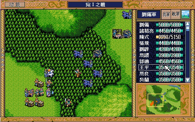 对这四个人再解释一次:刘辟其实很好养的,从瓦口开始前期反击杀伤并不大,后期往往可以让他单独行动,弄个村庄或鹿砦,放个敌骑(最好是名将)在里面就行了, 之所以要求后期追级的贼策略要高原因就在这里;剩下3个大策略者,陈式一个人有富余,按我的进度宛II以后3战都可以再上1个大策略;沙摩柯只需占4个位置就可以用襄阳青囊,所以只需再挤出1战即可;藩宫前面一直可以压级,按木之的成绩到雒I为47.93级,刨去2主将算47级,兖州之后只出了江陵、公安、雒I三战62回合,后面还有没有烧火机会要再算过,但即使现在就变战车也比关纯优了。请注意,关纯天然出成绩应计算到兖州为止,为40级左右,用补丁会高一些,游客丁是42级,再多就要挤占他人资源了。